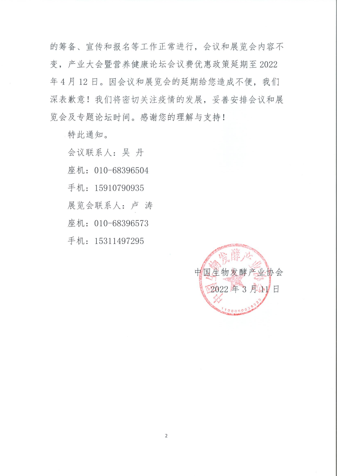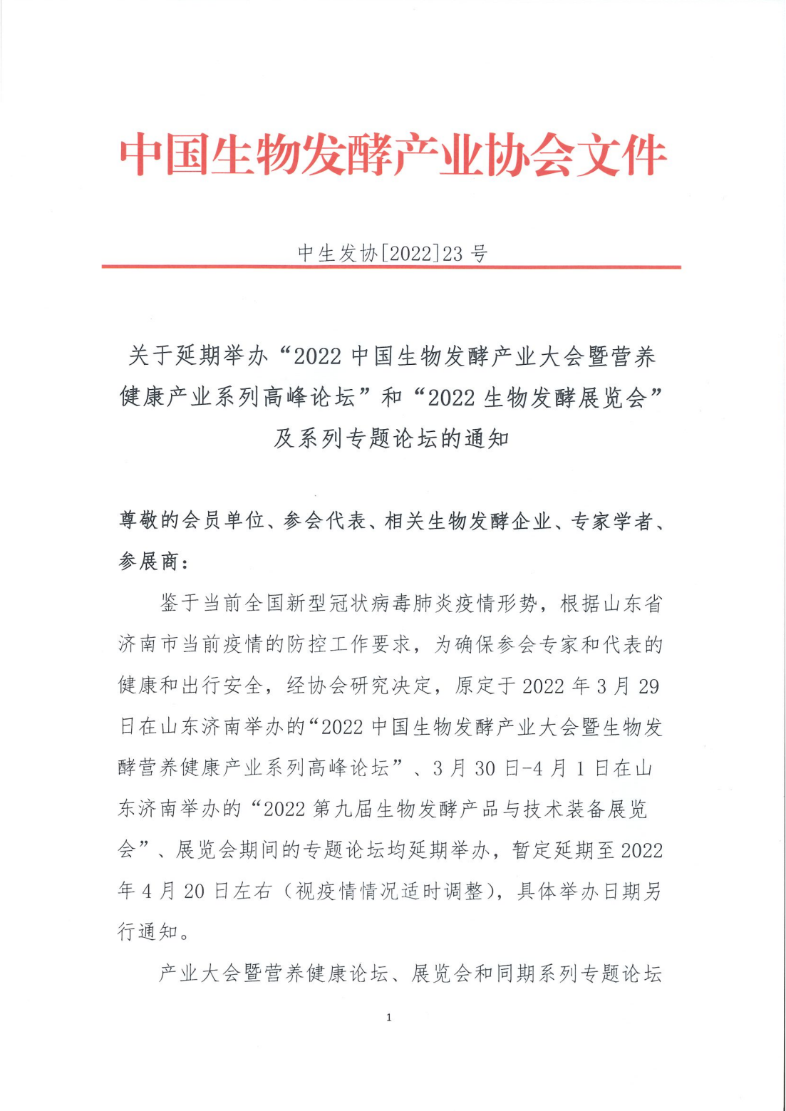 关于“2022第九届生物发酵产品与技术装备展览会(济南)”及同期系列论坛延期的通知