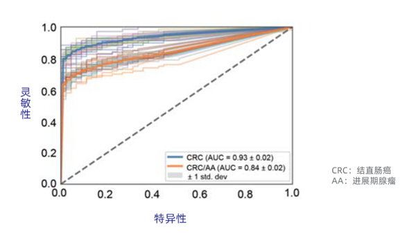 检测CRC平均AUC:0.93 | 检测AA平均AUC:0.84