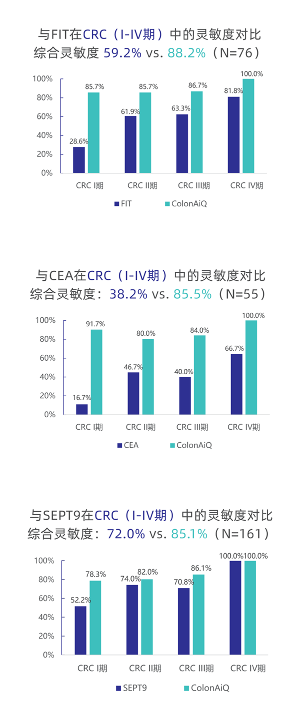 常艾克® 检测性能均优于FIT,CEA和SEPT9单基因检测