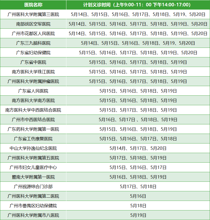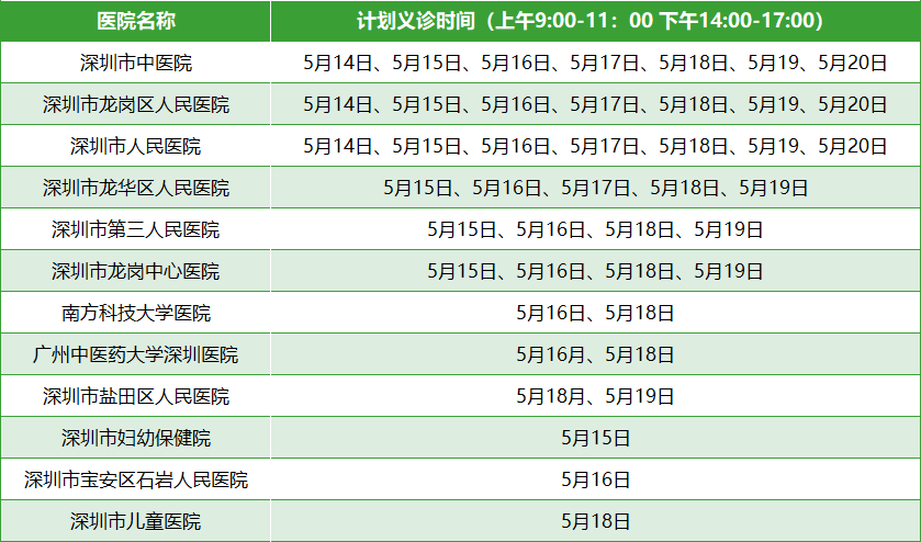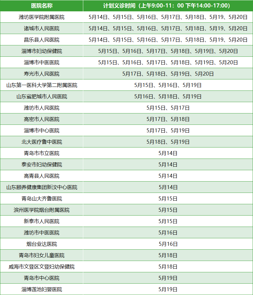 义诊时间:2023年5月14-20日,每日上午9:00-11:00;下午14:00-17:00;