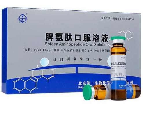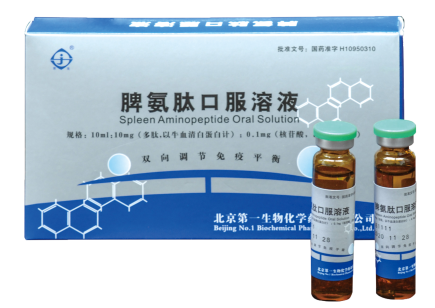 脾氨肽口服溶液系小分子肽类物质,实验药效学证实该品有调节细胞免疫和体液免疫的功能,具有双向免疫调节作用,经补充临床验证证实: