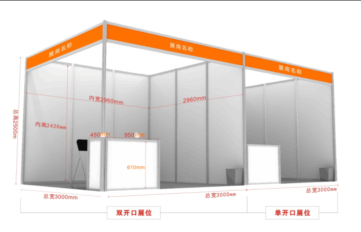 注:国内企业双开口展位另加收展位费RMB500元/个,国外企业双开口展位另加收费USD10%展位费。