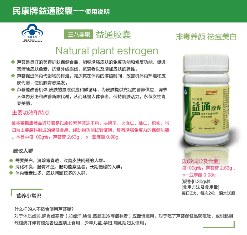 厂家生产供应 益世康牌益通胶囊 蓝帽国健字排毒润肠益通胶囊