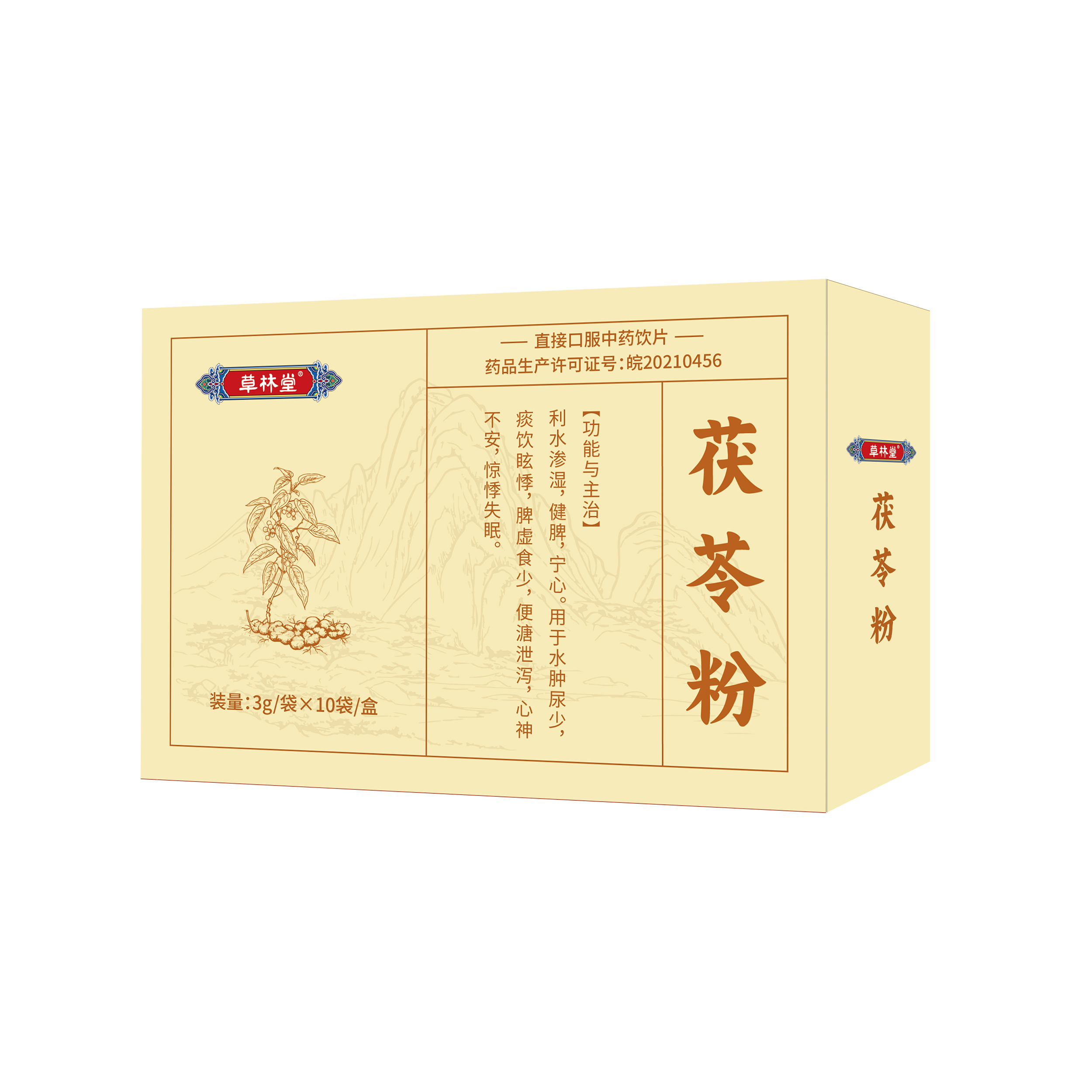 利水渗湿,健脾,宁心。用于水肿尿少,痰饮眩悸,脾虚食少,便溏泄泻,心神不安,惊悸失眠。