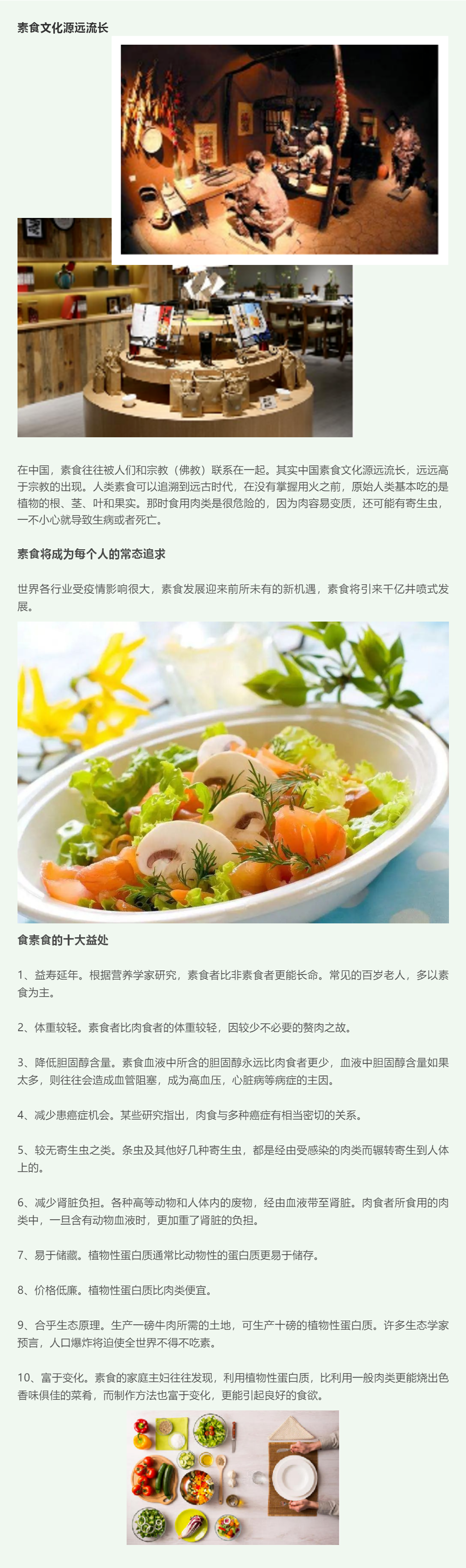 在中国,素食往往被人们和宗教(佛教)联系在一起。其实中国素食文化源远流长,远远早于宗教的出现。人类素食可以追溯到远古时代,在没有掌握使用火之前,原始人类基本吃的是植物的根、茎、叶和果实。那时食用肉类是很危险的,因为肉很容易变质,还可能有寄生虫,一不小心就导致生病或者死亡。